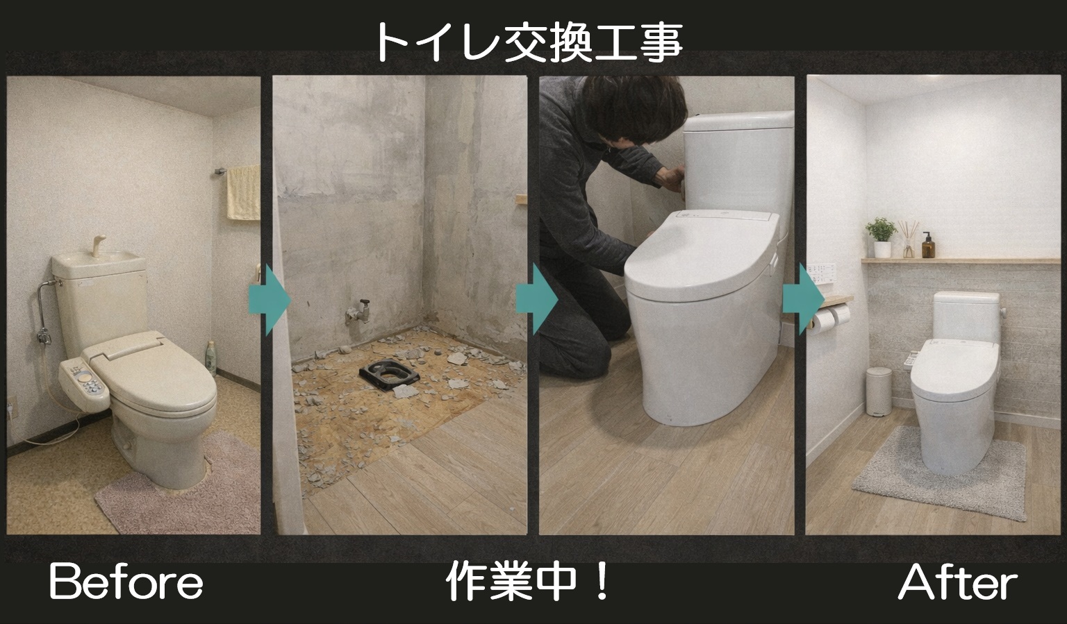 工事ではまず既存のトイレを丁寧に取り外し、給排水の位置や配管の状態を確認します。その後、新しい便器を水平にしっかり固定し、給水接続やウォシュレットの動作確認を行います。必要に応じて床や壁紙の張り替えも同時に行い、空間全体をきれいに仕上げます。
